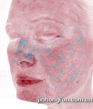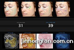 VISIA面部圖像分析儀可以得到如下的八幅面部圖像。其中標準白光四幅,可定量分析面部 的斑點,毛孔,皺紋和平滑度。UV光圖像二幅,可以定量分析面部下層的紫斑和卟啉。交叉 偏振光圖像兩幅,可以定量分析面部皮膚下層的紅區和褐色斑狀況。